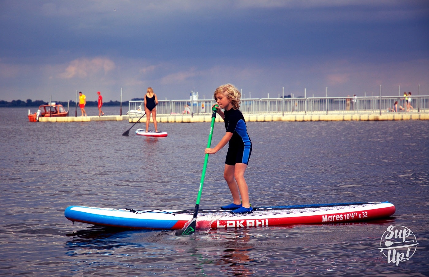 SUP, czyli Stand Up Paddle, to połączenie surfingu i kajaka. Jest to nowy, przyjemny i jednocześnie najbezpieczniejszy wymiar sportu wodnego, wykorzystującego zalety deski i wiosła. Do pływania wystarczy woda oraz kilka minut na naukę podstaw. Deski cechuje duża wyporność i stabilność na wodzie, co sprawia, że SUP-y są dla wszystkich osiągalne!